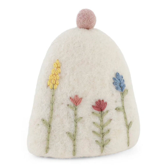 Soft egg warmer in white fabric with refined embroidery details . Keeps your egg warm longer and adds a charming touch to the breakfast table.