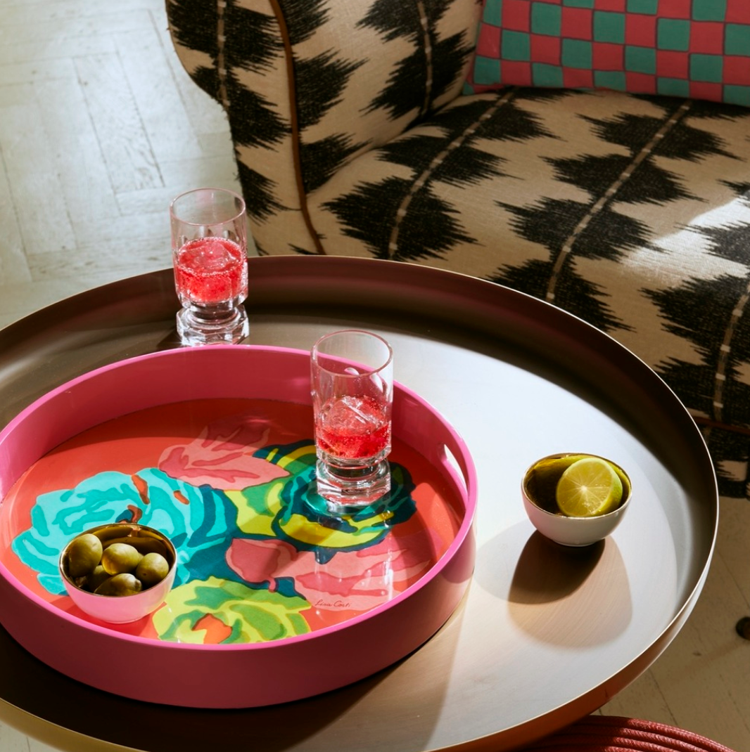 Het Nizam Flower Geranium-design barst van kleur en energie, en brengt een zomerse flair in huis. Dit veelzijdige dienblad is ideaal om je koffietafel op te fleuren, een aperitief stijlvol te serveren of als opvallend woonaccent.
