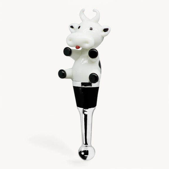 Originele flessenstop met koe-figuur, handgemaakt in Murano-stijl glas. Sluit wijn- en mousserende flessen goed af zodat aroma’s behouden blijven. Past op standaard flessen en is ook geschikt voor olijfolie. Een leuk en stijlvol cadeau voor wijnliefhebbers.
