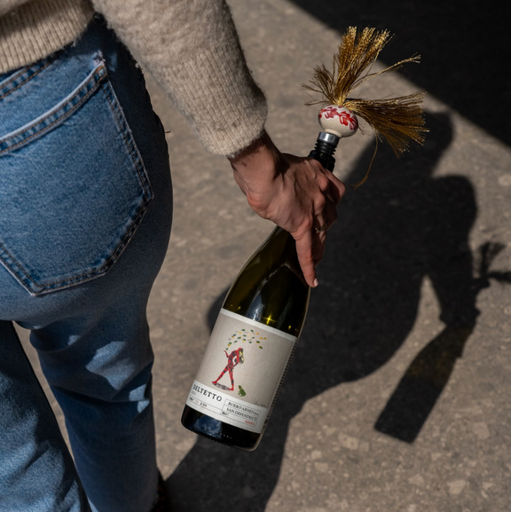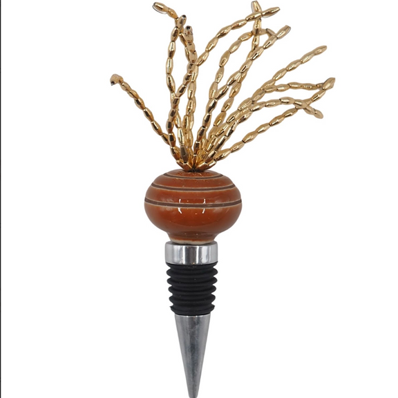 Een elegante flessenstopper met een speels, decoratief bovenstuk in sliertvorm. Sluit je wijn- of olieflessen stijlvol af en voeg een trendy accent toe aan je tafelsetting.