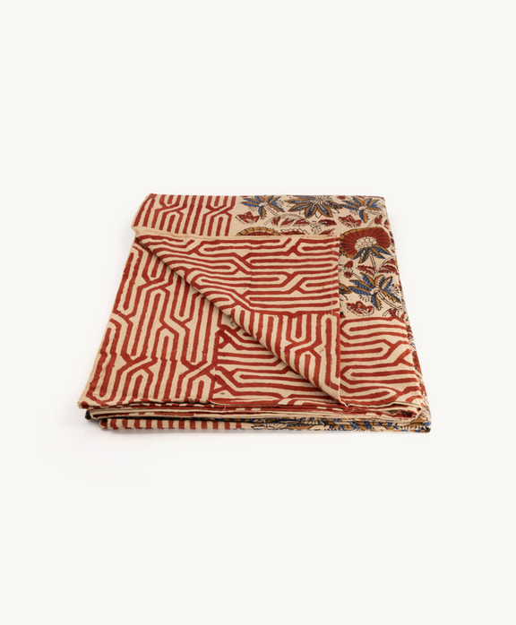 Ontdek het handbedrukte tafellaken Willow, geleverd met een bijpassende tote bag. Elk exemplaar is met zorg vervaardigd in India uit 100% katoen en straalt vakmanschap en zachtheid uit. Perfect voor een sfeervol gedekte tafel, maar dankzij het soepele materiaal ook ideaal te gebruiken als plaid voor een picknick in het park of een ontspannen dag aan zee.