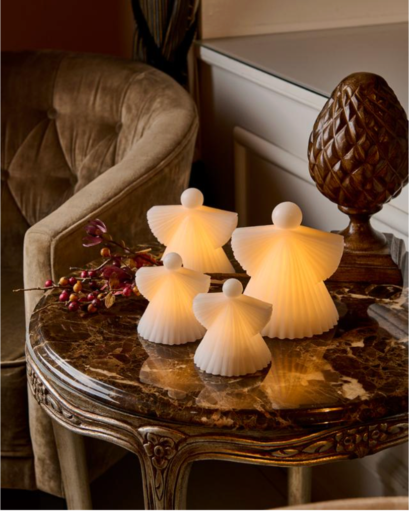 Deze prachtige lamp combineert de charme van een traditionele kerstengel met een strak, Scandinavisch design. Het warme LED-licht straalt subtiel door het fijne oppervlak, waardoor een zachte en pulserende gloed ontstaat die zorgt voor een intieme en gezellige sfeer.