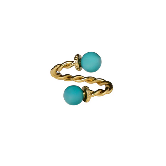 Voeg een vleugje luxe en verfijning toe aan je tafelsetting met deze prachtige servetring in goudkleurig staal. Het elegante, gedraaide design wordt aan beide uiteinden afgewerkt met een licht blauwe kleur. Deze servetring is niet alleen een praktische accessoire om servetten stijlvol te presenteren, maar ook een subtiele eyecatcher die warmte en karakter toevoegt aan elk diner.