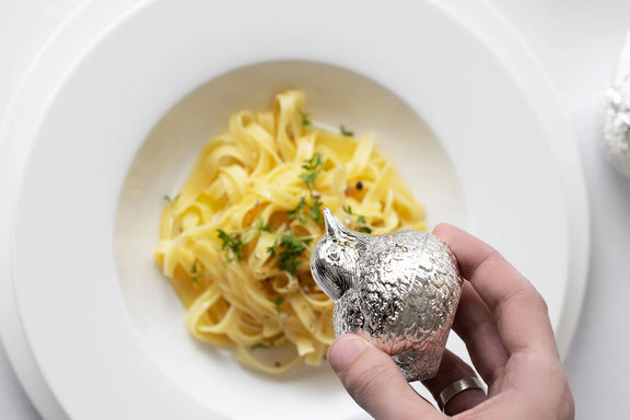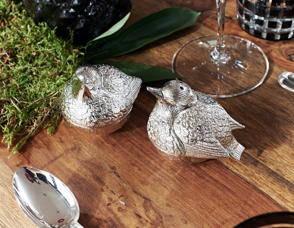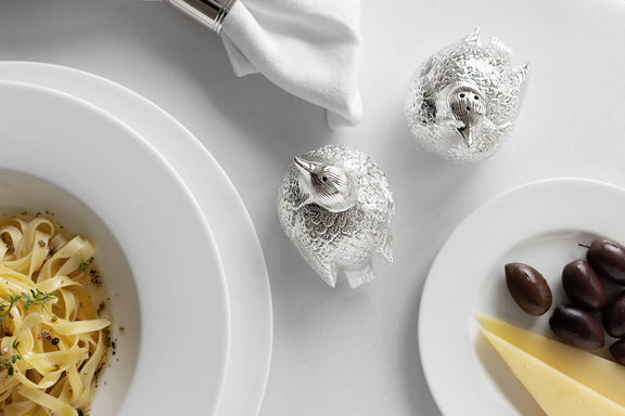 Charmant setje zout- en pepersetje met verfijnd musjesmotief. Edel verzilberd, hoogglans gepolijst en aanslagvrij. Praktisch in gebruik en een stijlvolle blikvanger op tafel. Ook geschikt als kruidenstrooier.