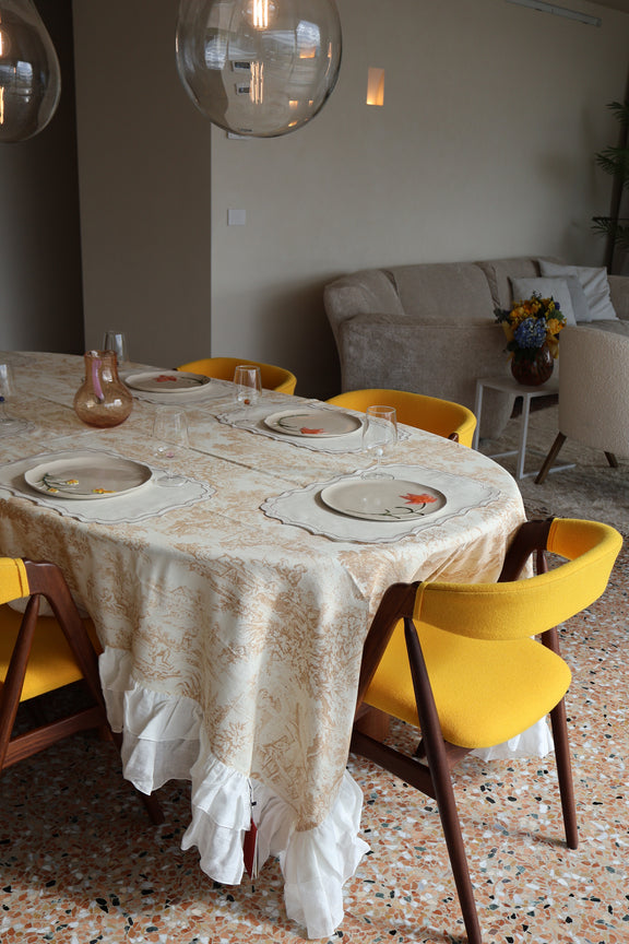 Elk kleed wordt op maat gemaakt, afgestemd op uw interieur, uw servies, uw stijl.