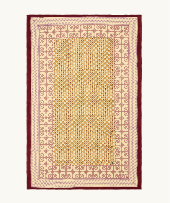 Ontdek het handbedrukte tafellaken Dani, geleverd met een bijpassende tote bag. Elk exemplaar is met zorg vervaardigd in India uit 100% katoen en straalt vakmanschap en zachtheid uit. Perfect voor een sfeervol gedekte tafel, maar dankzij het soepele materiaal ook ideaal te gebruiken als plaid voor een picknick in het park of een ontspannen dag aan zee.