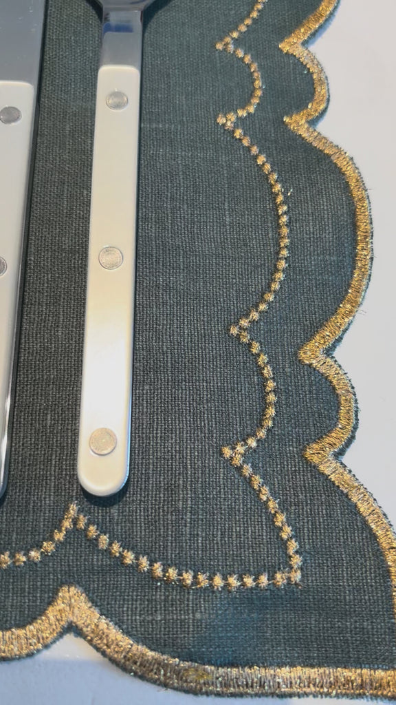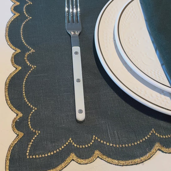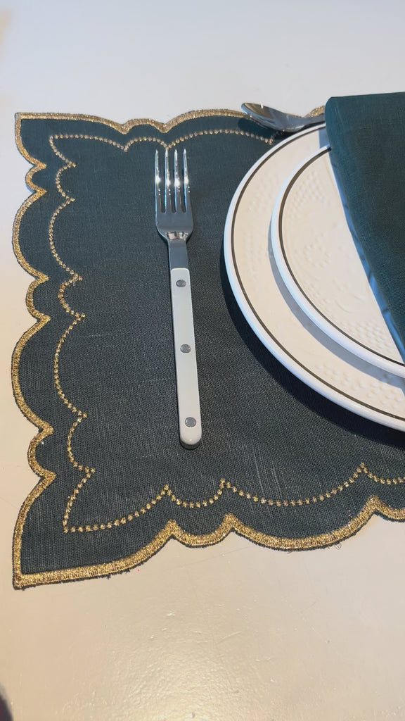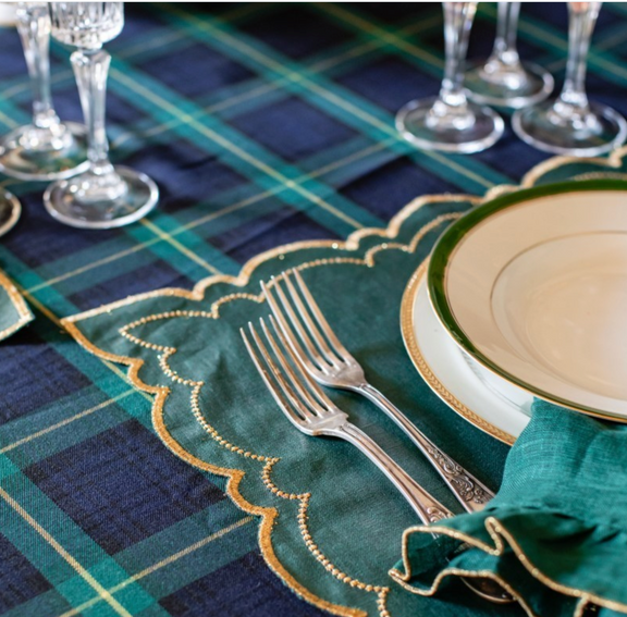 Letizia Vlekwerende Linnen Placemat 50 x 35 - Groen met gouden randje